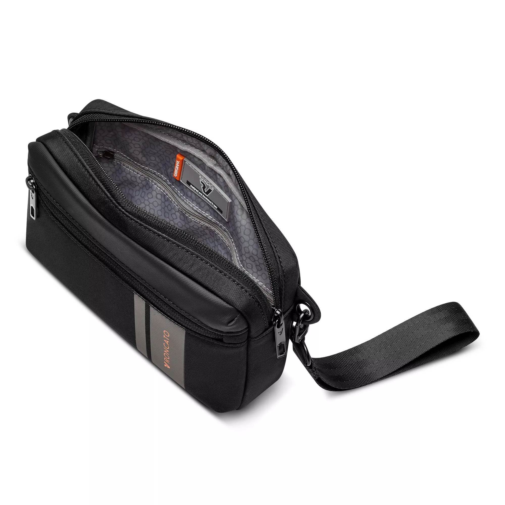 Il pratico borsello da uomo è stato realizzato con materiali ad elevata resistenza agli urti e alla luce del sole. E’ dotato di una tasca principale con divisori interni e una pratica tasca frontale con cerniera zip.