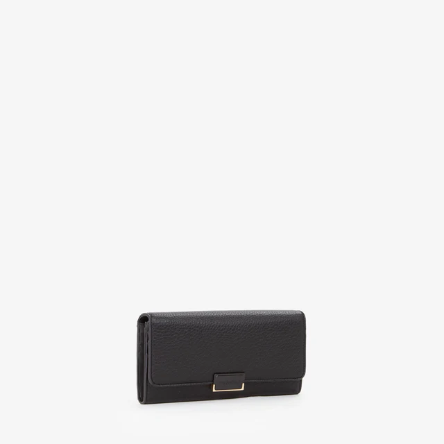 Portafogli donna in ecopelle martellato con logo stampato su placchetta lucida.