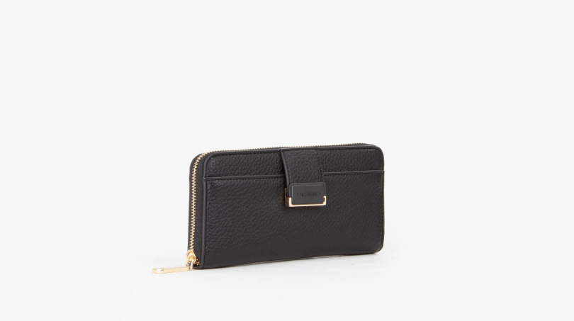 Portafogli donna in ecopelle martellato con logo stampato su placchetta lucida.